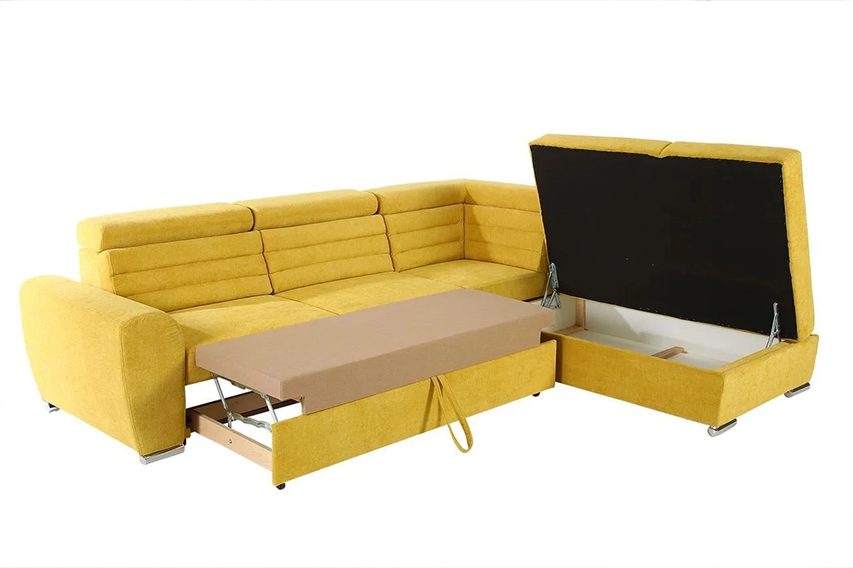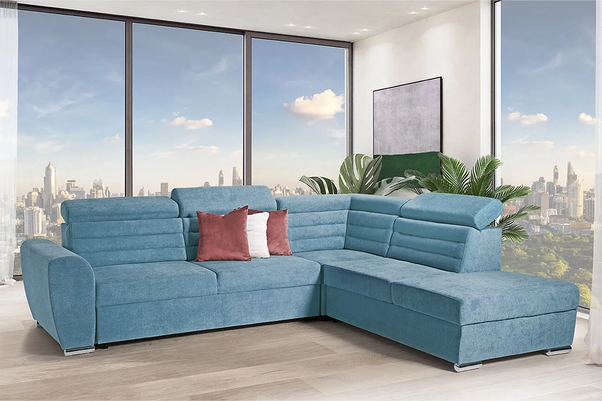 Grandiozan dizajn i grandiozne funkcije, štepani naslon, srebrne nogice, sva ova ljepota dovoljna je da ispuni prostor i podari mu takvu dimenziju, da u tom istom prostoru nisu potrebni ostali specijalni detalji. Ugaona garnitura Melani posjeduje mehanizam za rasklapanje u ležaj, podesivi mehanizam naslona za glavu i prostor za odlaganje.