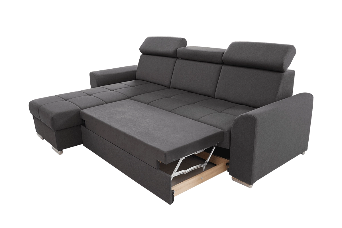 UG Square Slim je moderna ugaona garnitura sa funkcijom razvlačenja, idealna za svakodnevnu upotrebu. Podesivi nasloni za glavu i prostrano sjediste pružaju vrhunsku udobnost, dok skriveni prostor za odlaganje štedi prostor u domu.